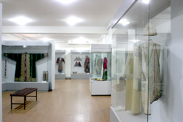 Qo‘li gul, O‘zbekistonlik, chevarlarning badiiy to‘qimachilik buyumlari – kashtachilik, gul bosish, abr nusxali matolar, gilamlar, zardo‘zlik kiyim- kechaklari namoyon etilgan. Ekspozitsiyada nomoyish etilayotgan kashtalar asosan shoyi yoki baxmalga tikilgan. Zardo‘zlikda asosan islimiy, goh-goh handasaviy gullar tikilgan. Ipak, yarimipak abrli matolar – shoyi, atlas, beqasam, olacha va boshqa matolarning boy to‘plami muzeyda jamlangan. Ekspozitsiyada deyarli yurtimizning barcha kashtachilik markazlari: Buxoro, Nurota, Samarqand, Toshkent, Shahrisabz, Farg‘ona kashtachilik maktablari namunalari o‘rin olgan.